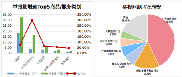 消費(fèi)者積極發(fā)揮社會監(jiān)督作用,2022年全年向市場監(jiān)管部門舉報各類違法線索472.23萬件,同比增長40.34%,其中舉報廣告違法行為202.73萬件、侵害消費(fèi)者權(quán)益行為72.31萬件、食品安全違法行為34.18萬件。從增幅看,不正當(dāng)競爭行為、商標(biāo)違法行為、網(wǎng)絡(luò)交易違法行為舉報同比上升均超過60%。