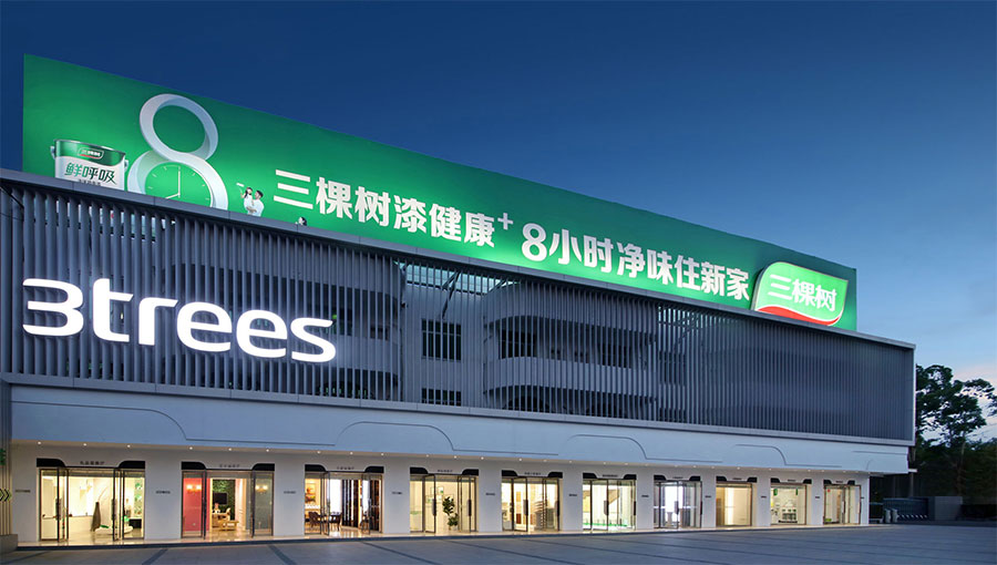 三棵樹涂料股份有限公司創(chuàng)立于2003年,始終關(guān)注人類美好生活和家居健康,致力于打造內(nèi)外墻涂料、防水、保溫、地坪、輔材、施工“六位一體”的綠色建材一站式集成系統(tǒng),打造以高品質(zhì)涂料為主和家居新材料為輔、基輔材全配套、健康、色彩、品位、服務(wù)一體的美好生活解決方案。三棵樹于2016年登陸上海證券交易所在A股主板上市,2020年品牌價(jià)值達(dá)292.36億元,成為中國(guó)民營(yíng)企業(yè)500強(qiáng)中上榜的涂料企業(yè)。三棵樹總部位于福建莆田,在上海成立中心,并在四川、河南、天津、安徽、河北、廣東、湖北等設(shè)有及在建9個(gè)生產(chǎn)基地,現(xiàn)已成為全資及控股20家公司的企業(yè)。三棵樹現(xiàn)有員工近6000名,在全球擁有5000多家合作伙伴。三棵樹獨(dú)具特色的“道法自然”生態(tài)文化和被譽(yù)為“醉美企業(yè)”的生態(tài)園區(qū),每年吸引數(shù)萬(wàn)人前來(lái)參觀、學(xué)習(xí)和交流。
