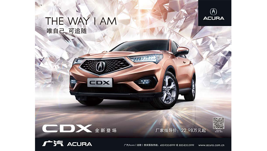 2006年,在品牌成立20周年之際,Acura登陸中國市場。2016年4月,廣汽集團(tuán)與HONDA共同建立廣汽Acura新事業(yè)體制,開啟了中國市場發(fā)展的新篇章。2017年,廣汽Acura發(fā)布全新中文口號“精確 不凡”,它是對Acura品牌主張“Precision Crafted Performance”的領(lǐng)會與傳承,“精確”是Acura品牌的基因和靈魂,是對每一個(gè)細(xì)節(jié)的精益求精,是以極致科技打造的先端座駕,是以精誠理念締造的卓越服務(wù)。“不凡”是Acura品牌的追求和歸宿,是帶給每個(gè)夢想同行者的憧憬,是打破常規(guī)為顧客帶來的駕馭喜悅,唯有堅(jiān)持對“精確”的不懈追求,才能成就偉大與“不凡”。