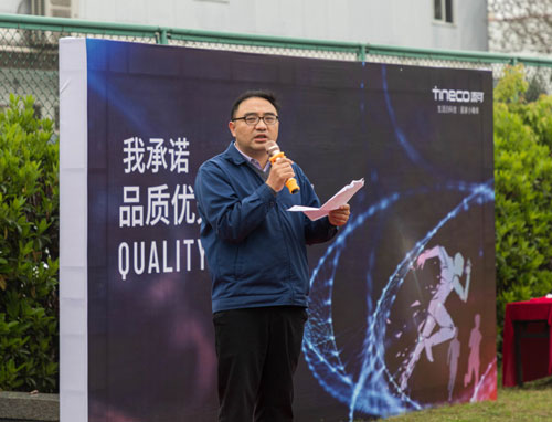 制造中心總監(jiān)劉焱南總發(fā)表演講,他強調,品質優(yōu)先是從我們每一個人做起,從我們的思想意識中就認識到品質的高度重要性,我們要遵守工藝紀律,嚴格按照我們標準作業(yè)指導書來進行,每一個步驟嚴格遵守,使得我們做出來的產品,都是合格品。