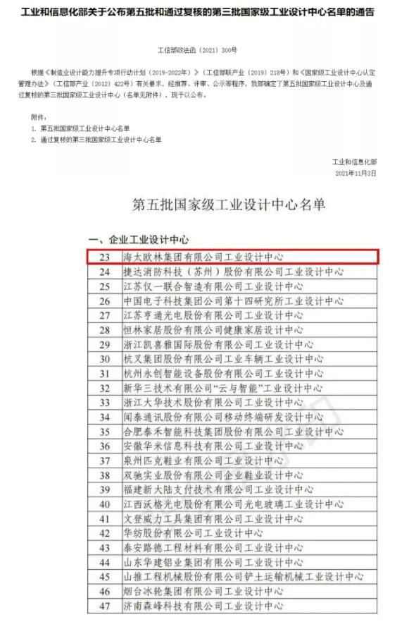 國家級!海太歐林集團(tuán)喜提“國家級工業(yè)設(shè)計中心”