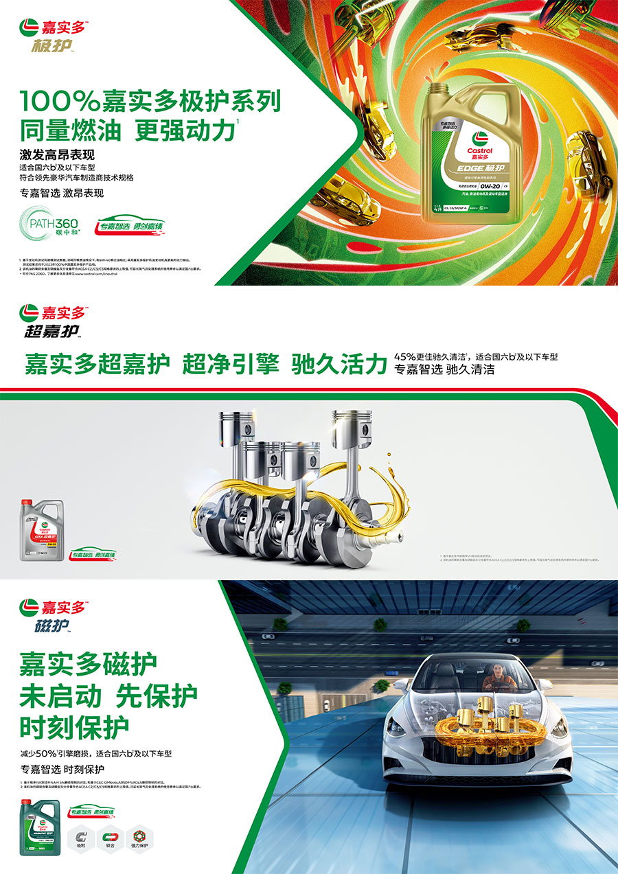嘉實多秉承“onward,upward,forward(向前,向上,向未來)”的品牌理念,不斷引領(lǐng)行業(yè)突破,助力世界發(fā)展。Onward(向前)表征著嘉實多持續(xù)深耕乘用車,商用車和船舶等領(lǐng)域,為客戶和消費者提供更好的移動出行解決方案;Upward(向上)彰顯著嘉實多不斷致力于為汽車工業(yè),機械制造,風(fēng)能和航空航天領(lǐng)域提供有效的工業(yè)解決方案;Forward(向未來)昭示著嘉實多積極擁抱全新業(yè)務(wù)領(lǐng)域,憑借品牌獨有的技術(shù)優(yōu)勢,助力客戶和消費者應(yīng)對不斷變化的需求和挑戰(zhàn)。