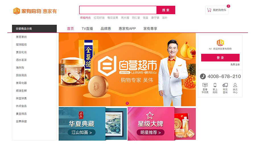 主要產(chǎn)品:家居用品、家用電器、服裝鞋帽、食品、美妝、珠寶首飾、收藏品、運動健康用品、家紡用品等產(chǎn)品