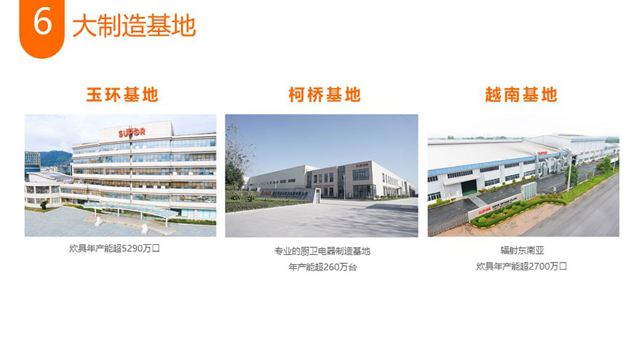 浙江蘇泊爾股份有限公司是中國最大、全球第二的炊具研發(fā)制造商,中國廚房小家電領先品牌。在杭州、玉環(huán)、紹興、武漢和越南建立了5大研發(fā)制造基地,擁有1萬多名員工。蘇泊爾是中國炊具行業(yè)首家上市公司(股票代碼002032)。浙江蘇泊爾家電制造有限公司是浙江蘇泊爾股份有限公司的控股子公司,注冊資本13369萬元,自2004年1月成立,主要生產電飯煲、電蒸鍋、電燉鍋、煎烤器等廚房小家電產品。2022年營收達到37.65億元,擁有2100多名員工,目前為中國最大的電飯煲生產基地。