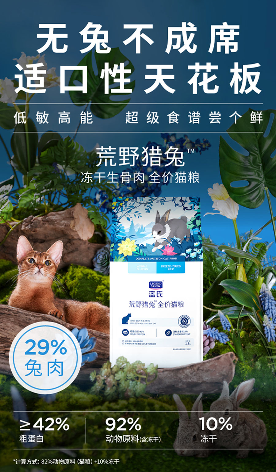 藍氏明星產品“獵鳥乳鴿均衡營養(yǎng)全價貓糧”首創(chuàng)乳鴿配方添加17%鮮乳鴿,獨特甜甜圈夾心顆粒工藝,為同質化貓糧市場增加更多可能性!自2021年上市全網銷量超500萬包,藍氏乳鴿糧也是國家飼料博物館收錄的首款貓糧,曾3次蟬聯(lián)天貓貓糧榜單TOP1,該產品與“老爸抽檢”合作,從產品原料、生產過程和產品品質對產品進行多項認證檢測,為藍氏構建全方位立體化的產品價值承諾!