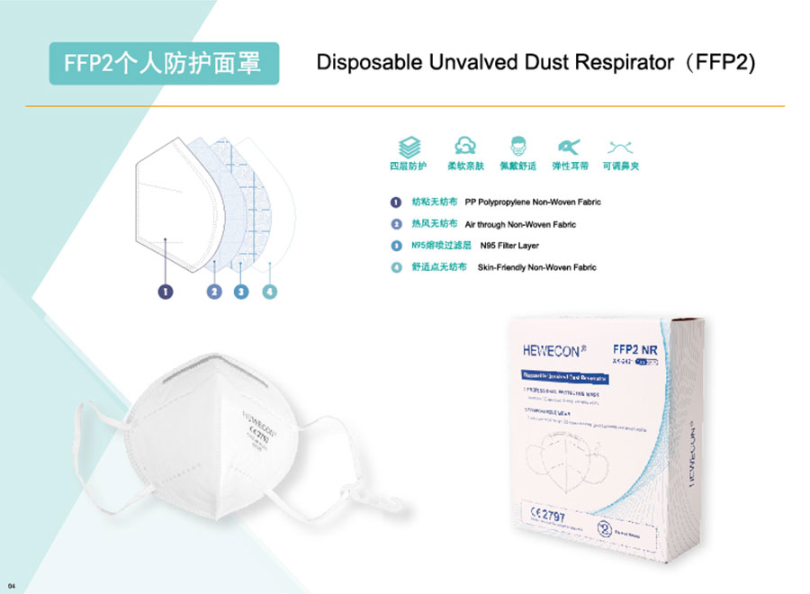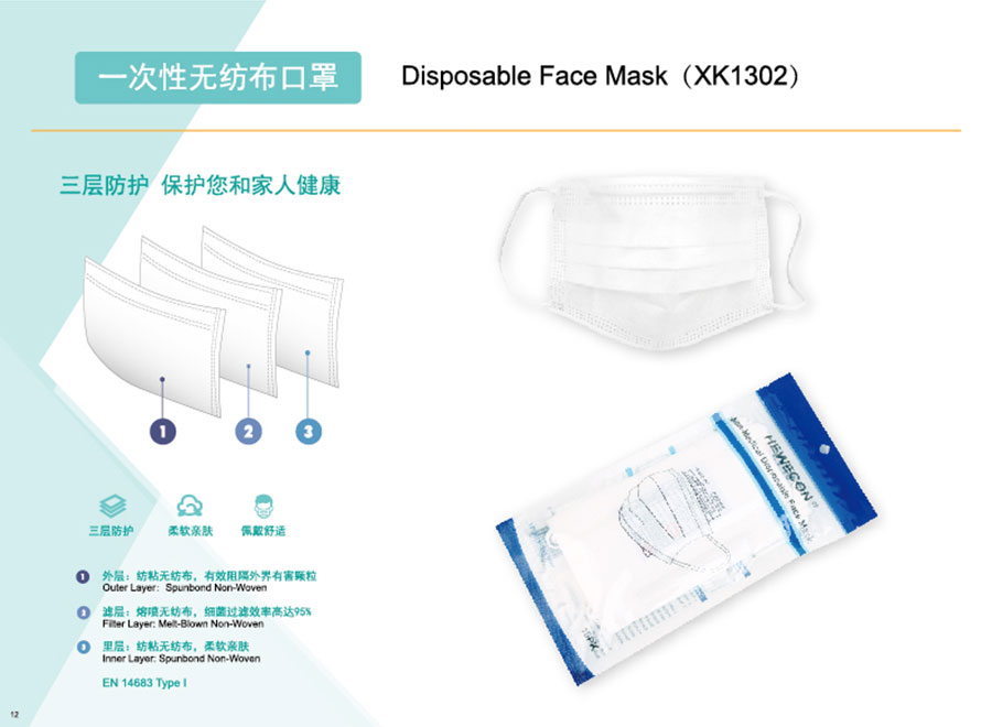 主要產(chǎn)品:海維康醫(yī)用外科口罩、醫(yī)用防護(hù)口罩、一次性無紡布口罩、KN95口罩、FFP2口罩、隔離衣、消毒濕巾