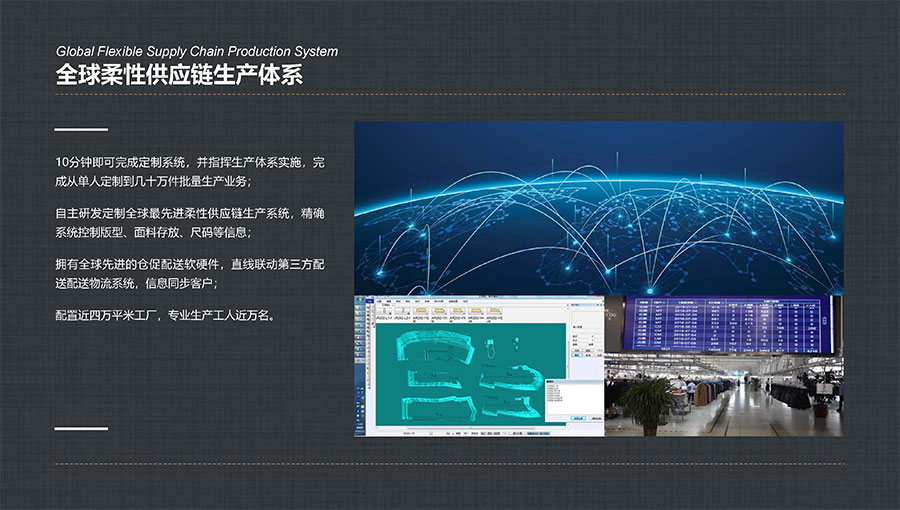 大楊集團(tuán)堅持以“打造世界最強服裝定制平臺”為目標(biāo),重點打造數(shù)字化柔性智能定制工廠,以自主開發(fā)的Ustyylit(優(yōu)思達(dá))服裝定制工業(yè)互聯(lián)網(wǎng)平臺為依托,以生產(chǎn)線的數(shù)字化改造為手段,實現(xiàn)多品種、小批量、高品質(zhì)、快速反應(yīng)的定制化生產(chǎn)模式。大楊集團(tuán)現(xiàn)已擁有7家智能化生產(chǎn)工廠、40條智能化生產(chǎn)線。其中,自主研發(fā)的“智能懸掛式高速分揀與存儲系統(tǒng)”榮獲“中國服裝行業(yè)科技進(jìn)步獎一等獎”。同時,“支持深度定制與即時體驗的服裝行業(yè)工業(yè)互聯(lián)網(wǎng)平臺”項目,入選工信部2020年度新型信息消費示范項目,以及2022年工業(yè)互聯(lián)網(wǎng)平臺創(chuàng)新領(lǐng)航應(yīng)用案例,被授予中國紡織行業(yè)數(shù)字化轉(zhuǎn)型勞動競賽先進(jìn)單位。