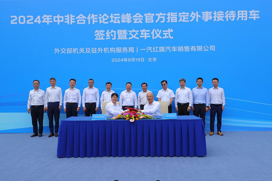 與國同頻,與國共進(jìn)。8月19日,2024年中非合作論壇峰會(huì)官方指定外事接待用車簽約暨交車儀式在北京圓滿舉行。一汽紅旗將攜旗下C+級旗艦轎車新紅旗H9、東方豪華旗艦MPV紅旗HQ9、豪華禮賓新旗艦紅旗國悅,在本次論壇峰會(huì)期間為與會(huì)貴賓提供高水準(zhǔn)的出行服務(wù),向世界展示中國汽車工業(yè)創(chuàng)新發(fā)展成果,彰顯“以禮興邦,以禮固邦”的大國氣度。