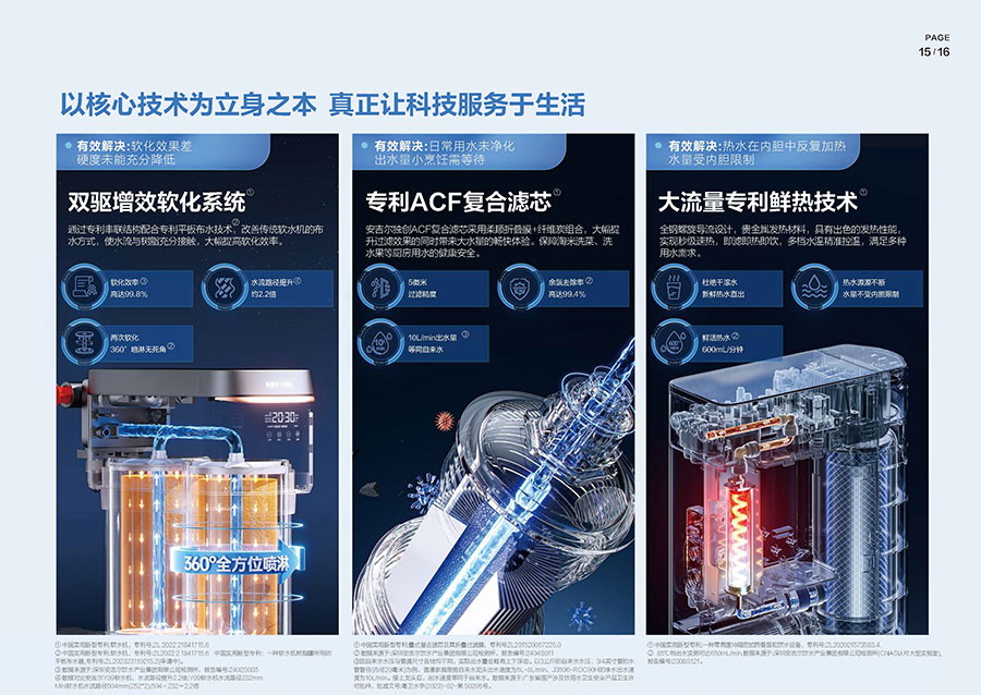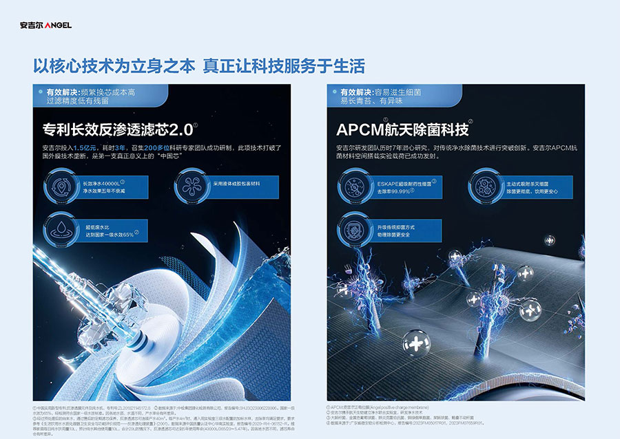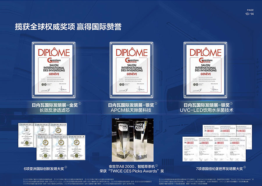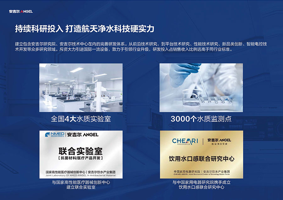 38年間,安吉爾堅持科技創(chuàng)新并主導行業(yè)技術升級,參與制定17項國家及行業(yè)標準,獲得900余項技術專利,建成4大水質(zhì)實驗室。2023年,該企業(yè)憑借創(chuàng)新實力包攬全球9項發(fā)明大獎,包括3項日內(nèi)瓦國際發(fā)明展獎項與6項亞洲創(chuàng)新發(fā)明展獎項。