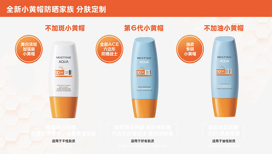 歷經(jīng)37年的科研沉淀,MISTINE蜜絲婷品牌在防曬、護膚、底妝、彩妝多個品類的產(chǎn)品開發(fā)中,堅持圍繞對“光”的研究,在光與防曬護膚、光與色彩妝容的產(chǎn)品應(yīng)用層面,研究光、理解光、樂享光,持續(xù)不斷地提供產(chǎn)品解決方案,滿足消費者對防曬美白、潮流妝容、護膚健康的需求。防曬系列產(chǎn)品作為MISTINE蜜絲婷的知名品類,以物化生一體的全鏈路防曬技術(shù),憑借高倍防曬、清爽膚感的高功效和高質(zhì)價比勝出,自2021年連續(xù)三年位于中國防曬護膚品銷量領(lǐng)先。