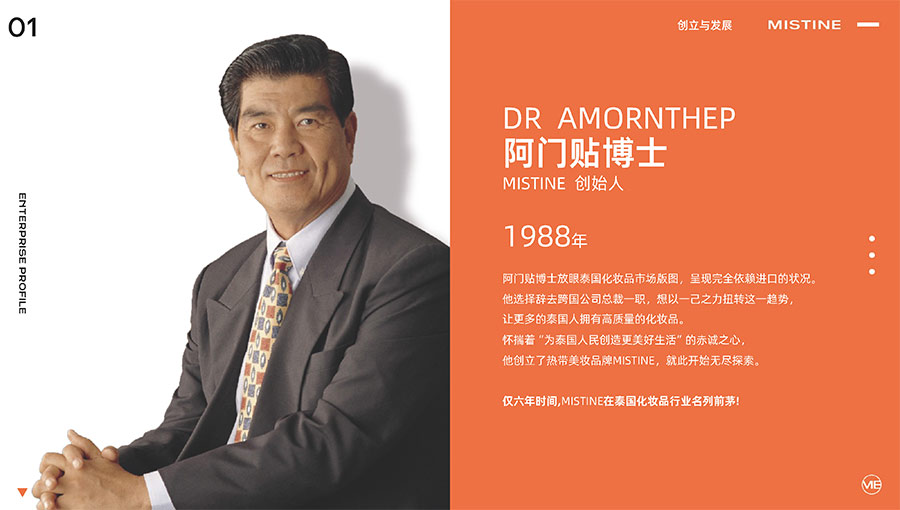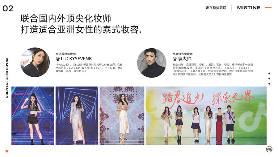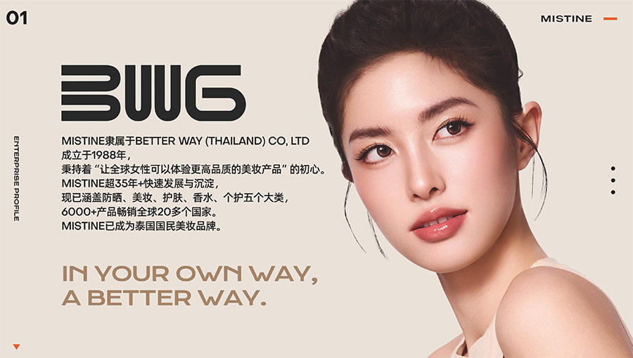 MISTINE蜜絲婷1988年始源于泰國,作為知名國際美妝品牌,擁有37年科研底蘊,產(chǎn)品種類涵蓋防曬、美妝、護膚、香水、個護五大類,擁有近6000多個單品暢銷全球20多個國家,專注為全球女性提供豐富、安全、高品質(zhì)的美妝產(chǎn)品。自2016年進入中國后,MISTINE蜜絲婷以“熱帶青春能量美妝”為品牌定位,為年輕人打造更懂得他們的全新美妝產(chǎn)品,并傳遞獨特的健康活力生活方式。