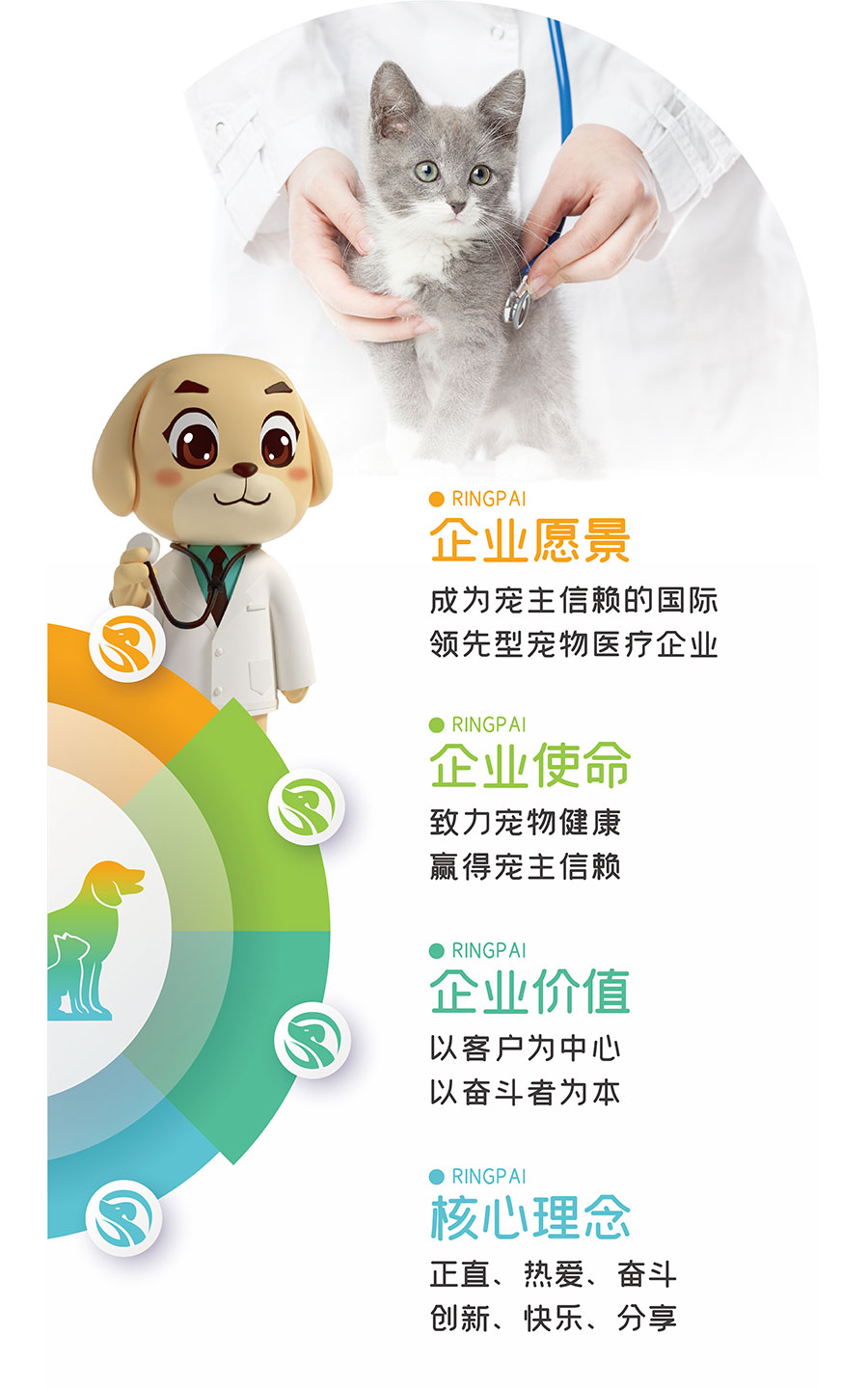 目前瑞派寵物醫(yī)院所轄門店超600家,覆蓋全國27個(gè)省,70余座城市,年接診量超300萬例,員工6000余名,其中博士9人,碩士126人,醫(yī)療專業(yè)人員3000余人,執(zhí)業(yè)獸醫(yī)師1800余人。瑞派寵物醫(yī)院與浙江大學(xué)、中國農(nóng)業(yè)大學(xué)等全國100多所院校開展產(chǎn)學(xué)研合作,與碩騰、勃林格、皇家、瑞普生物等國內(nèi)外產(chǎn)業(yè)領(lǐng)軍企業(yè)建立戰(zhàn)略合作關(guān)系,擁有國內(nèi)頂級(jí)專家領(lǐng)銜的專家團(tuán)隊(duì)。瑞派秉持“以客戶為中心,堅(jiān)持以奮斗者為本”的核心價(jià)值觀,致力于發(fā)展好每一位員工!發(fā)展好每一家醫(yī)院!堅(jiān)持服務(wù)好每一只寵物和每一位寵主!
