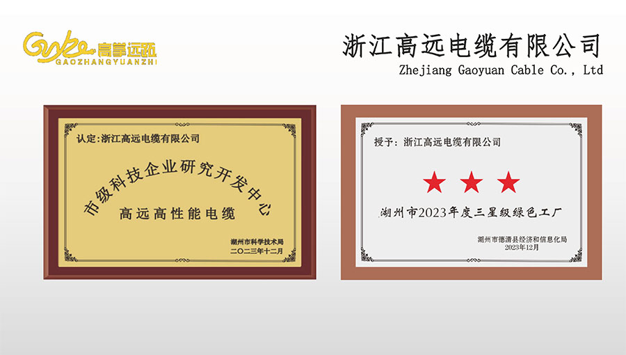 高遠電纜是浙江省電線電纜重點工業(yè)企業(yè),浙江省專精特新企業(yè)、浙江省科技型企業(yè),浙江省標準化良好行為AAA級企業(yè);獲得了國家頒發(fā)的生產許可證,通過了CCC國家強制性產品認證,ISO9001質量體系認證,ISO14001環(huán)境體系認證,OHSAS18001職業(yè)健康安全管理體系認證,PCCC產品認證、B1級燃燒性能授權書;榮獲浙江省著名商標,浙江省重合同守信譽企業(yè),浙江省優(yōu)質產品,市級研究開發(fā)中心,清潔工廠,綠色工廠等國家、省、市授權的榮譽稱號,取得了多項發(fā)明專利、實用型專利。