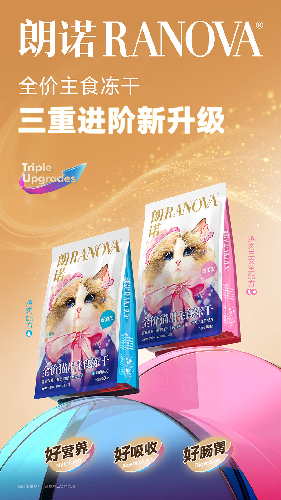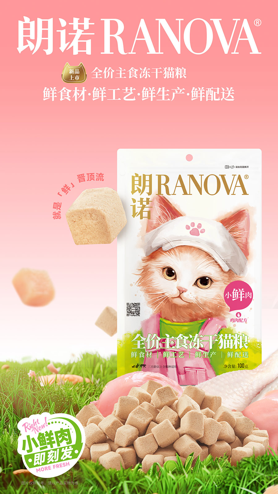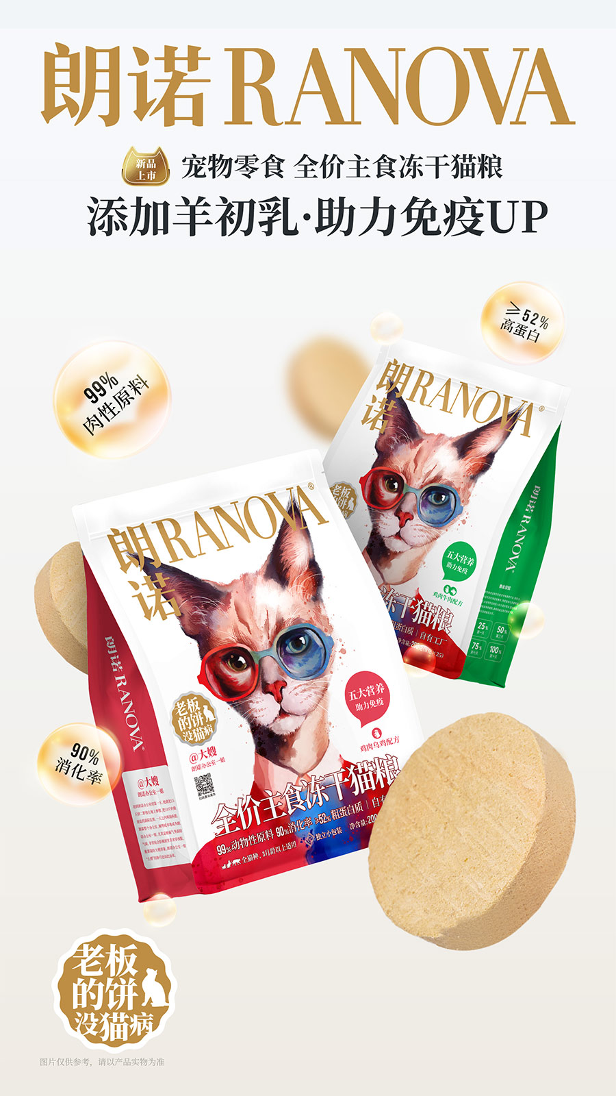 自“朗諾”創(chuàng)立伊始,便將目標(biāo)鎖定于寵物食品行業(yè)的高端領(lǐng)域——凍干寵物食品。作為寵物食品領(lǐng)域的高端產(chǎn)品線,凍干食品彼時(shí)尚未為國(guó)內(nèi)消費(fèi)者所熟知,朗諾的產(chǎn)品更多地投向國(guó)際市場(chǎng),登陸歐美后廣受青睞。2021年,朗諾在國(guó)內(nèi)市場(chǎng)實(shí)現(xiàn)快速發(fā)展,躋身頭部品牌行列,連續(xù)三年榮登天貓凍干寵物食品貓零食排行榜首位。其直供合作伙伴數(shù)量達(dá)10000多家,覆蓋一線、新一線城市及各省會(huì)城市,涵蓋眾多知名寵物連鎖店、寵物連鎖醫(yī)院、山姆會(huì)員店、盒馬鮮生、胖東來(lái)、名創(chuàng)優(yōu)品等線下精品零售終端。國(guó)內(nèi)市場(chǎng)的迅猛發(fā)展,為朗諾自主品牌進(jìn)軍海外市場(chǎng)奠定了堅(jiān)實(shí)基礎(chǔ)。2023年起,朗諾制定了自主品牌出海戰(zhàn)略,目前品牌已拓展至20多個(gè)國(guó)家。