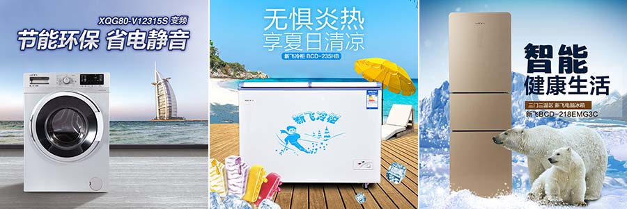 主要產(chǎn)品:新飛牌冰箱、冰柜、空調(diào)、洗衣機、酒柜