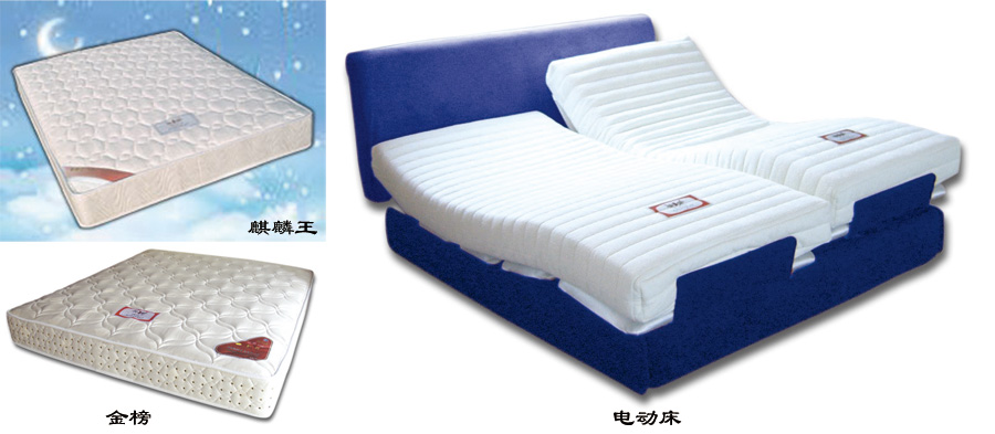 主導(dǎo)產(chǎn)品麒麟牌系列床墊,具有多種規(guī)格款式,有加強(qiáng)型、麒麟王型、新麒麟王型、冬夏木板、棕板王型、銀麒麟B型、金麒麟型、華貴型、金榜麒麟型、椰棕型、麒麟袋裝王床墊和麒麟電動床等。床墊選用優(yōu)質(zhì)彈簧鋼絲和高檔原材料,采用國際標(biāo)準(zhǔn)精工制作,經(jīng)國家家具檢測中心按北歐標(biāo)準(zhǔn)多次測試,破壞性試驗(yàn)達(dá)10萬次以上,16噸壓路機(jī)反復(fù)碾壓,仍完好無損。麒麟牌床墊具有軟硬適中、豪華美觀、經(jīng)久耐用之特點(diǎn)。麒麟牌床墊在國家級歷次質(zhì)量檢測中均名列前茅,連續(xù)十幾年獲國家A級產(chǎn)品,并榮膺“中國馳名商標(biāo)”殊榮。