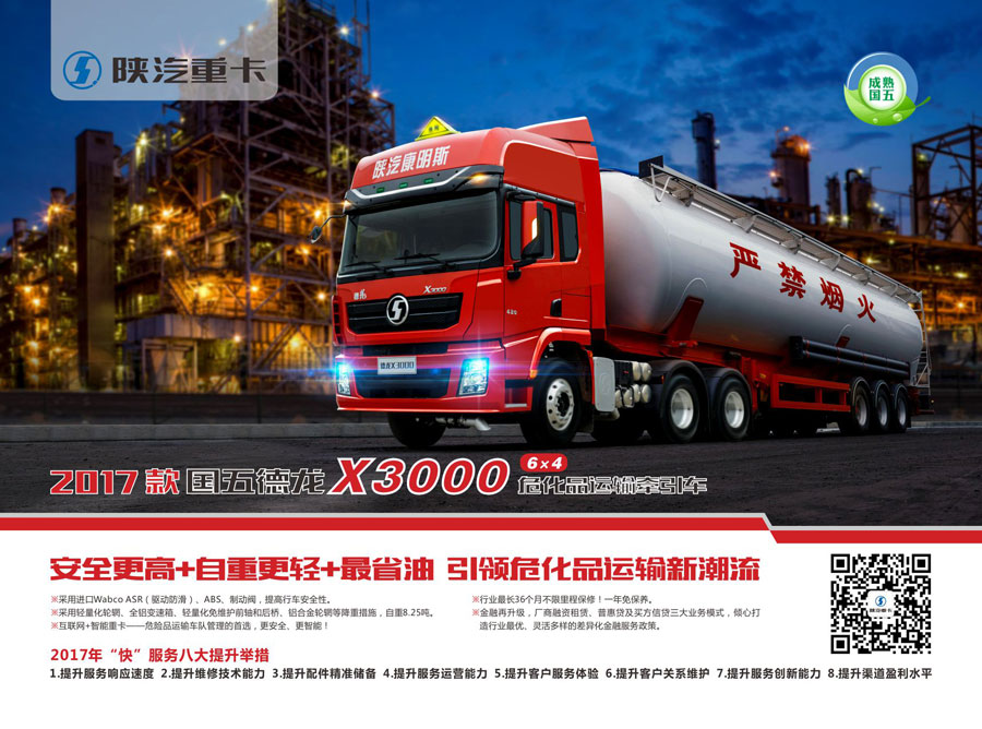 作為節(jié)能與新能源汽車(chē)產(chǎn)業(yè)的倡導(dǎo)者和推動(dòng)者,陜汽在節(jié)能與新能源商用車(chē)領(lǐng)域具有一流的技術(shù)及產(chǎn)品研發(fā)優(yōu)勢(shì),擁有38項(xiàng)LNG重卡專利技術(shù),承擔(dān)了國(guó)家863新能源商用車(chē)開(kāi)發(fā)項(xiàng)目,具備了新能源商用車(chē)系統(tǒng)集成及核心零部件開(kāi)發(fā)能力。在LNG、甲醇、二甲醚等節(jié)能重卡領(lǐng)域市場(chǎng)占有率超過(guò)45%;純電動(dòng)碼頭牽引車(chē)成功進(jìn)入美國(guó)市場(chǎng),實(shí)現(xiàn)了中國(guó)重卡產(chǎn)品在歐美發(fā)達(dá)國(guó)家市場(chǎng)的突破。