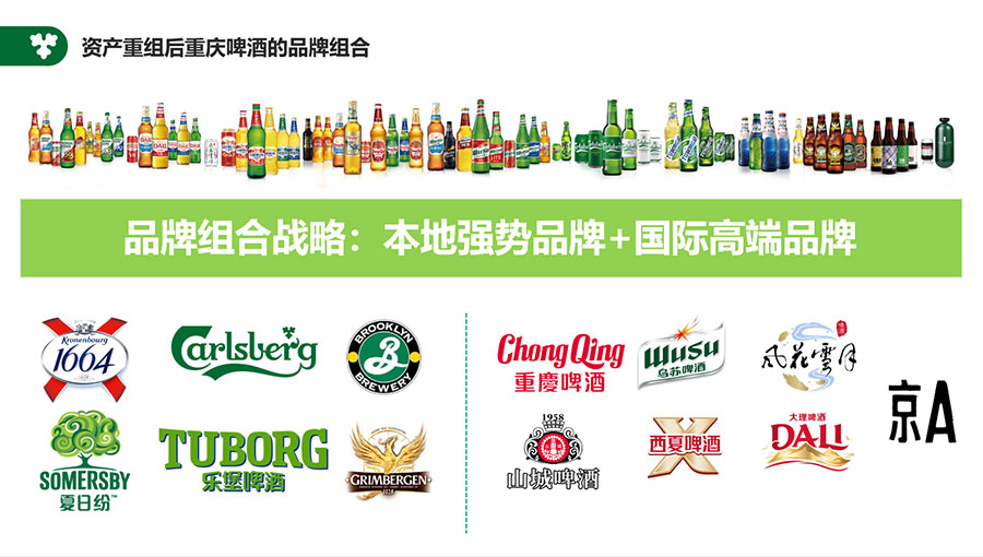 同時,重啤股份也擁有了更為強大的“本地強勢品牌+國際高端品牌”的品牌組合。國際高端品牌方面有嘉士伯、樂堡、凱旋1664、格林堡、布魯克林等,本地強勢品牌方面有重慶、山城、烏蘇、西夏、大理、風(fēng)花雪月、天目湖等,滿足消費者在不同場景的消費需求,成為重啤股份的核心競爭力之一。