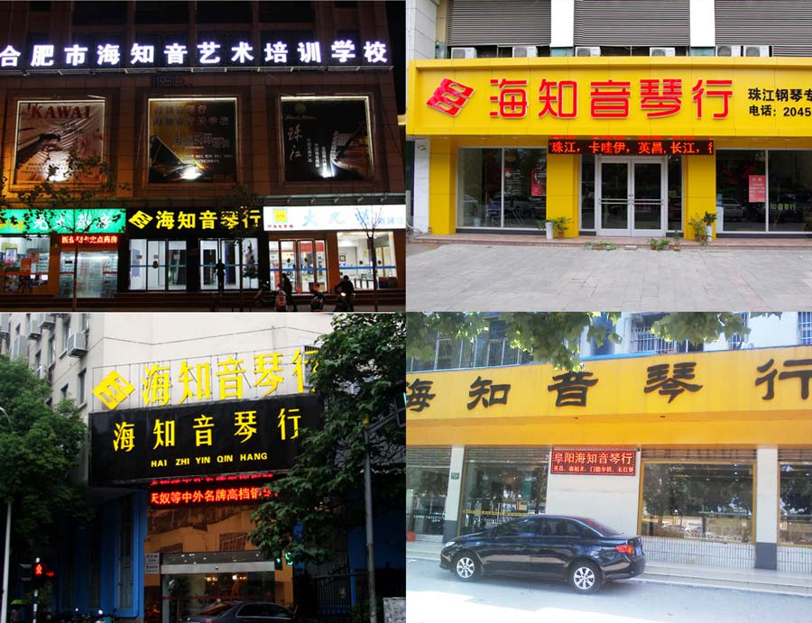 海知音琴行的門店包括合肥長江路店、宣城路店、合作化路店、蚌埠店、阜陽店、蕪湖店、巢湖店、淮南店、安慶店和南京洪武路店,營業(yè)面積達(dá)到6600平米,成為安徽地區(qū)鋼琴年銷量超7000臺位居全國鋼琴銷售量前列,成為中國內(nèi)地最頂級的琴行銷售企業(yè)之一。