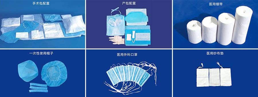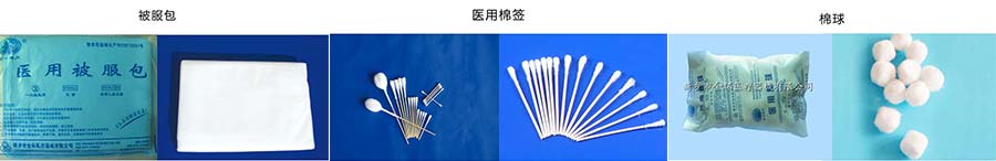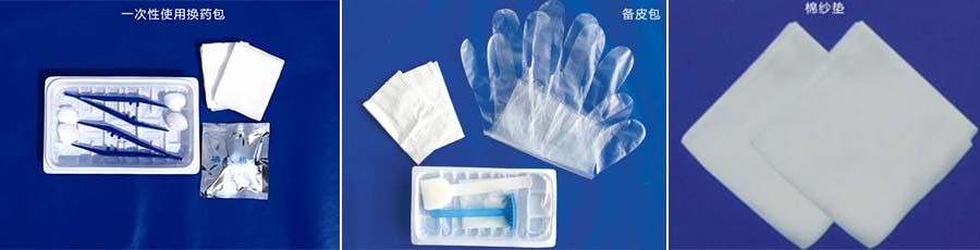 主要產(chǎn)品:金環(huán)騰月無菌產(chǎn)包、手術(shù)包、導(dǎo)尿包、換藥包、紗布?jí)K、無菌醫(yī)用墊等