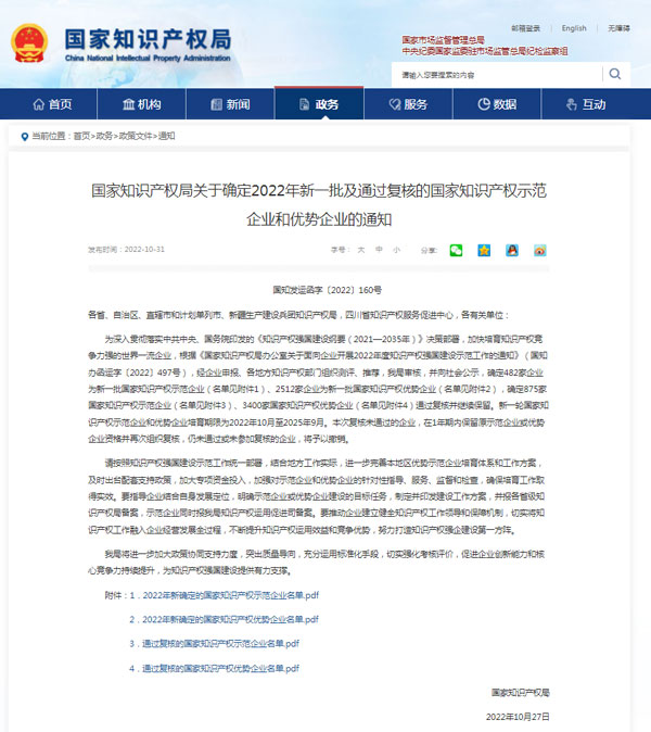 “國家知識產(chǎn)權(quán)優(yōu)勢企業(yè)”是我國知識產(chǎn)權(quán)管理領(lǐng)域的最高榮譽之一,是國家對企業(yè)在知識產(chǎn)權(quán)的創(chuàng)造、運用、保護、管理等方面的突出工作所作出的高度評價。入選企業(yè)都是擁有自主知識產(chǎn)權(quán)和知名品牌、具備行業(yè)競爭優(yōu)勢的技術(shù)領(lǐng)先企業(yè)。