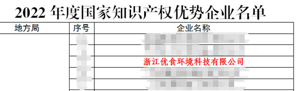 優(yōu)食科技榮獲“2022年度國家知識產(chǎn)權(quán)優(yōu)勢企業(yè)”稱號