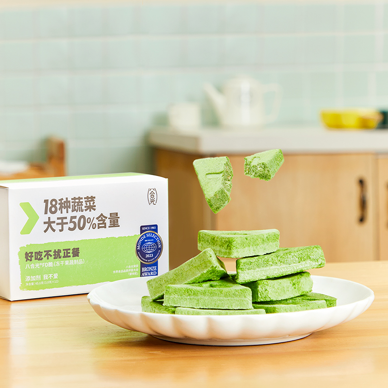 相較于傳統(tǒng)零食,凍干零食更契合了現(xiàn)在食品綠色、營養(yǎng)、健康的消費(fèi)趨勢。通過凍干技術(shù),可以最大限度地保持原本新鮮食材的色香味以及營養(yǎng)成分,甚至無需添加任何防腐劑就可以在常溫下長期保存。八合光率先融合“18種蔬菜”做成凍干零食,在中國兒童零食領(lǐng)域開創(chuàng)了機(jī)能零食品類,解決寶寶不愛吃蔬菜的難題,同時也給兒童帶來更健康的零食新選擇。