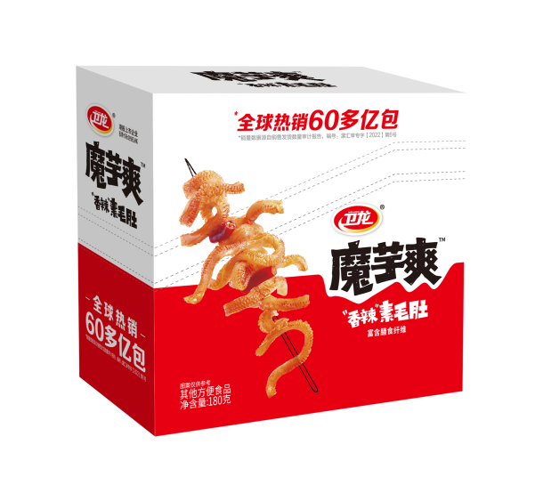 據(jù)相關(guān)資料顯示,衛(wèi)龍魔芋爽的研發(fā)靈感源自衛(wèi)龍研發(fā)團(tuán)隊(duì)一次涮火鍋的過(guò)程。2009年3月,衛(wèi)龍研發(fā)團(tuán)隊(duì)在成都吃火鍋時(shí),發(fā)現(xiàn)有一道叫做魔芋的素食在火鍋里涮過(guò)后分外香辣Q彈、爽滑美味,于是便誕生了以魔芋為原料制作零食的想法。在衛(wèi)龍研發(fā)負(fù)責(zé)人的帶領(lǐng)下,團(tuán)隊(duì)耗時(shí)五年,運(yùn)用源自四川地道雪魔芋的急凍蒸煮工藝,最終成功造就了爽脆、Q彈的衛(wèi)龍魔芋爽。
