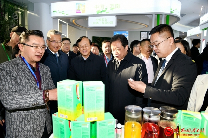 陜西省人大常委會(huì)副主任、渭南市委書記樊維斌,渭南市人民政府市長陳曉勇,中國生物發(fā)酵產(chǎn)業(yè)協(xié)會(huì)理事長于學(xué)軍等與會(huì)領(lǐng)導(dǎo)嘉賓到姿美堂科技集團(tuán)展區(qū)參觀。
