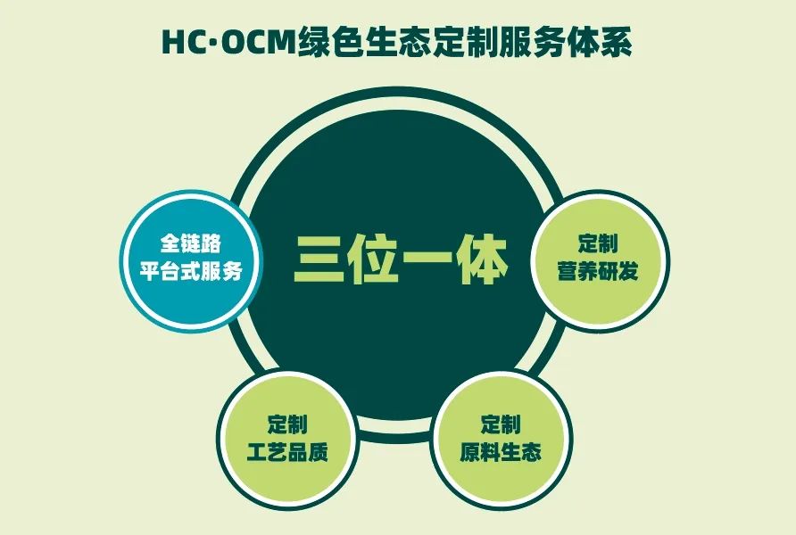 海辰有機不止提供基礎的OEM代工服務,更從品牌客戶的市場人群、寵物營養(yǎng)、產品功能三大需求入手,全力打造定制配方研發(fā)、定制生態(tài)原料、定制生產工藝、全鏈路平臺式服務四大方面在內的HC·OCM綠色生態(tài)定制服務體系,為合作品牌的成長提供強有力支撐。