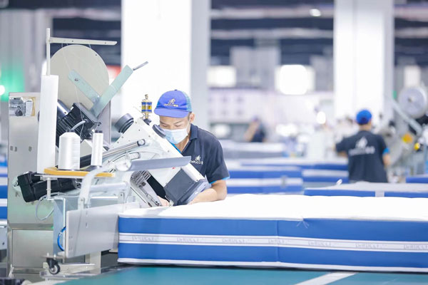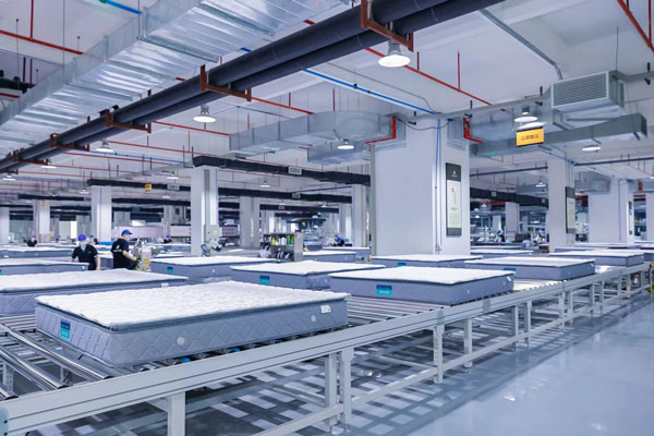 生產(chǎn)效率如虎添翼,每天生產(chǎn)近5000個型號、軟硬完全不同的床墊,原先需要1010人的工作量如今不超過600人即可完成,產(chǎn)能提升了30%-60%,生產(chǎn)周期縮短45.2%,解放人工的同時將每張床墊成本下降了9%-59%。