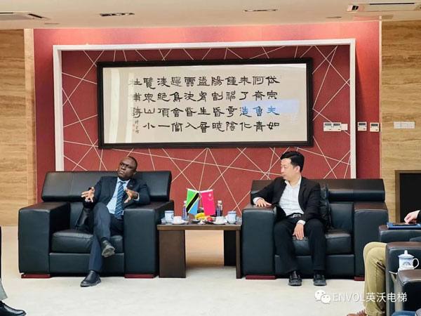 2023年 3月6 日,坦桑尼亞駐華大使H. E. Mbelwa Kairuki(H ·E ·姆貝爾瓦 ·凱魯基)先生一行訪問英沃電梯有限公司,董事長張力對凱魯基大使來訪表示熱烈歡迎,并介紹了英沃電梯發(fā)展的最新情況,雙方就深化合作進(jìn)行了交流探討。