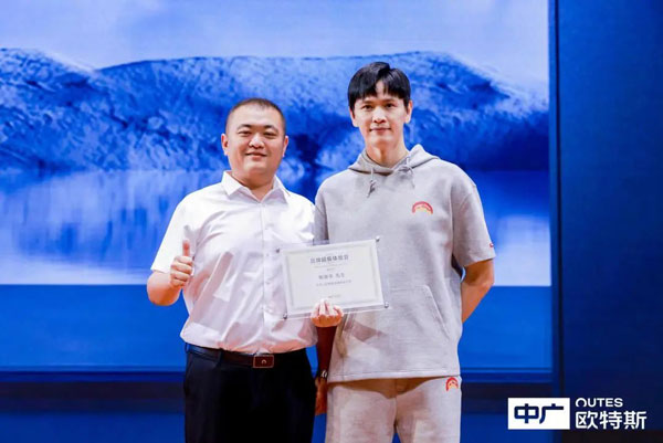 在現(xiàn)場嘉賓的共同見證下,浙江中廣電器集團股份有限公司品牌總監(jiān)盧尚有為鮑春來現(xiàn)場頒發(fā)了“品牌超級體驗官”授牌,正式宣告熱泵領(lǐng)軍者中廣歐特斯與羽毛球世界冠軍鮑春來強強聯(lián)手,開啟一段全新的熱愛之旅。同時,為恭賀鮑春來喬遷新禧,中廣歐特斯還現(xiàn)場贈送了一臺熱泵衣物護理機新品,為其帶來全新的衣物護理體驗。