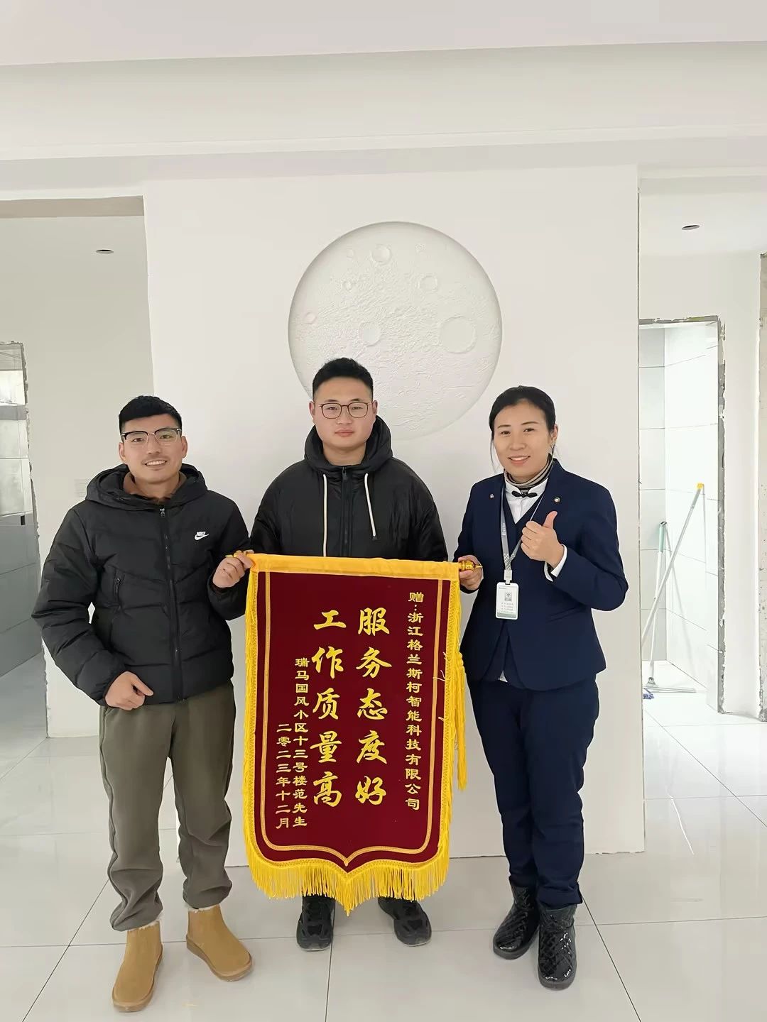 2023年12月,堅朗格蘭斯柯新風(fēng)事業(yè)部又增添了一面錦旗--“服務(wù)態(tài)度好,工作質(zhì)量高”,錦旗由瑞馬國風(fēng)小區(qū)物業(yè)、十三號樓業(yè)主范先生共同贈送,表達(dá)對格蘭斯柯新風(fēng)專業(yè)、貼心服務(wù)的感謝和認(rèn)可。