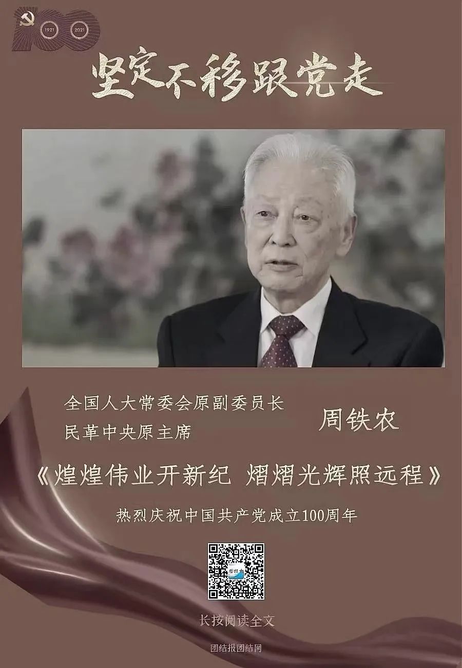 此時此刻,我們深切緬懷周鐵農主席!“團結報團結網”特別刊發(fā)周鐵農晚年接受本報記者專訪的文章《煌煌偉業(yè)開新紀 熠熠光輝照遠程——專訪民革中央原主席周鐵農 》(首發(fā)于2021年6月29日),以表達我們的深切悼念和緬懷敬仰之情。