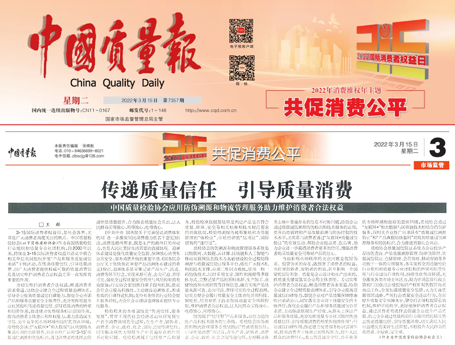 ——中國質(zhì)量檢驗協(xié)會應用防偽溯源和物流管理服務助力維護消費者合法權益